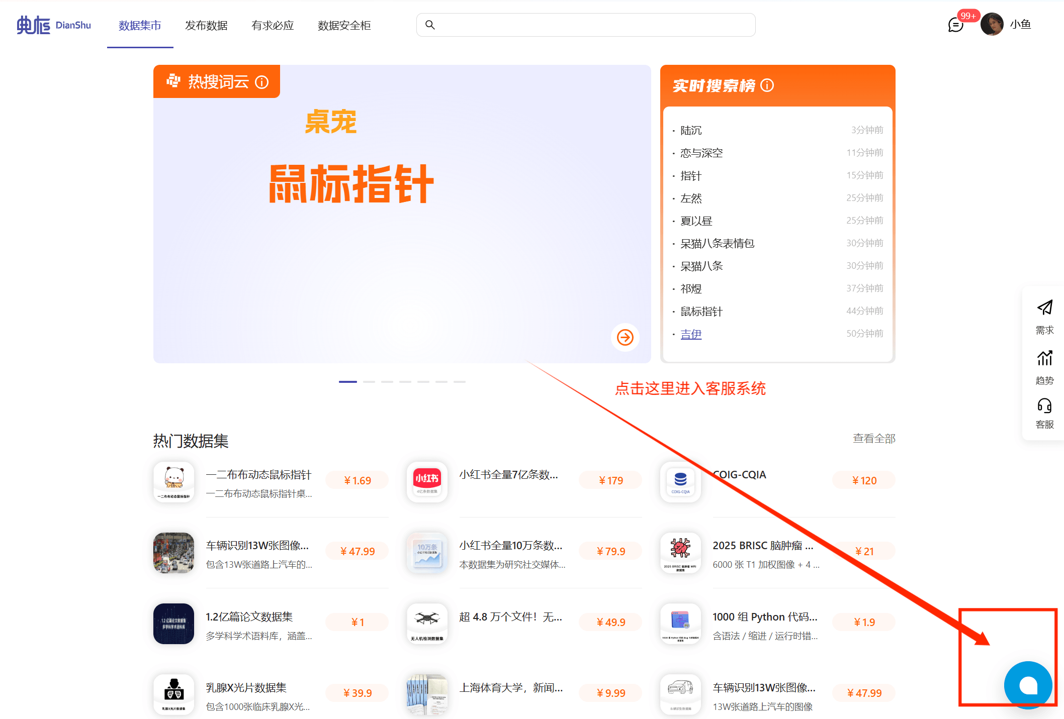 4、进入典枢(https://dianshudata.com/),点击右下角蓝色气泡,进入客服系统,发送:话题截图+订单截图+自己的支付宝收款码+报销金额,客服会在统一时间进行报销。|