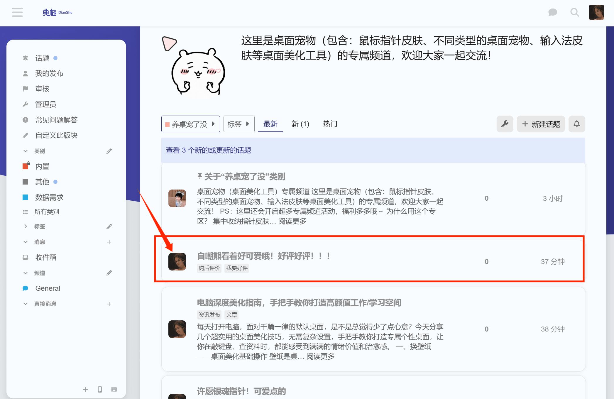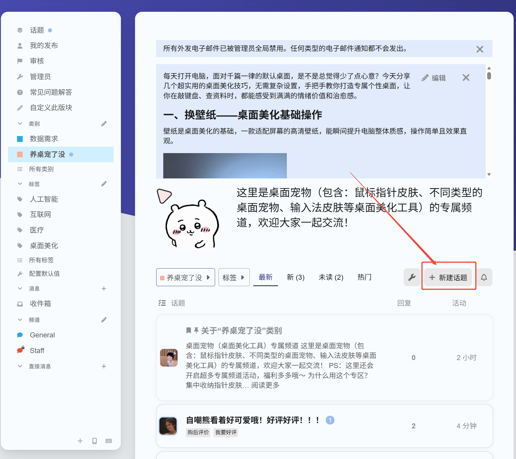 1、在 养桌宠了没话题 - 典枢-有求必应,点击“创建话题”